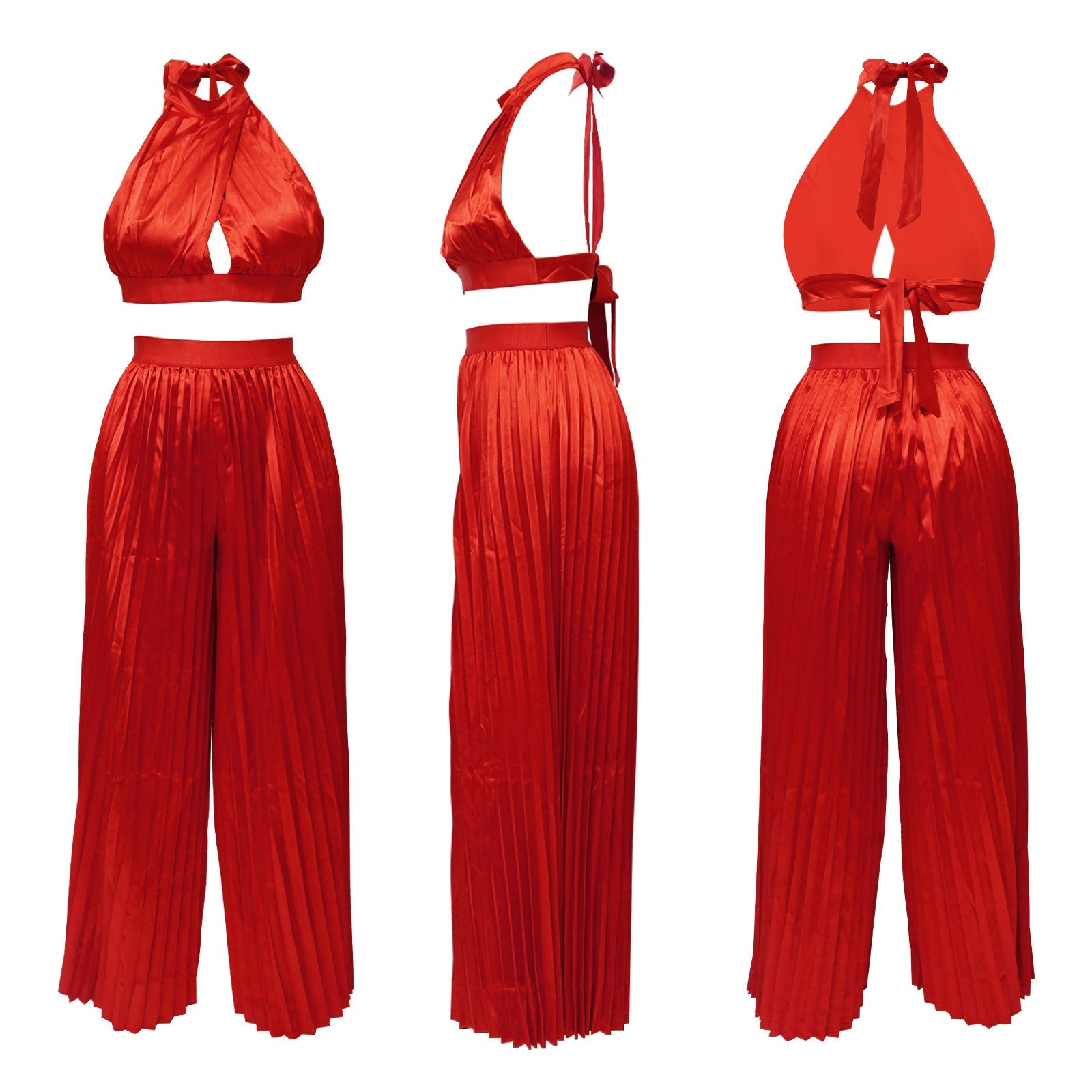 Cross-border Halter Neck Pleated Wide-Leg Pants Two-piece