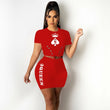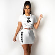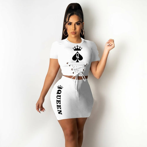 2 pcs Women Set Print Bandage O-neck Short Tops Mini Dress Summer Sexy