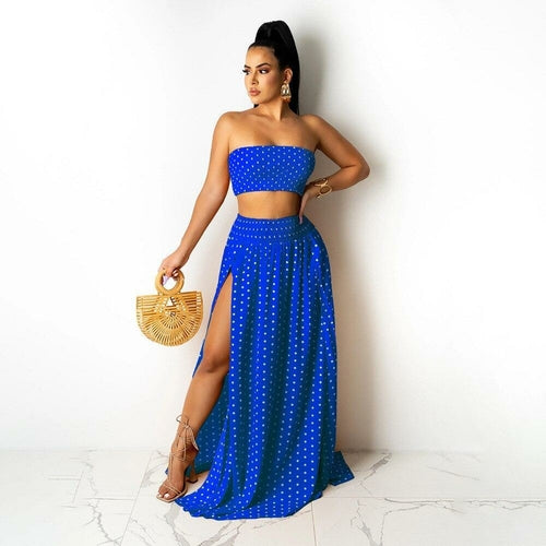 Dot Slash Neck Strapless Short Tops Maxi Dress