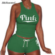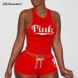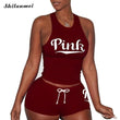 2022 Women's Tracksuit Set Pink Letter Print Casual Summer Two Piece