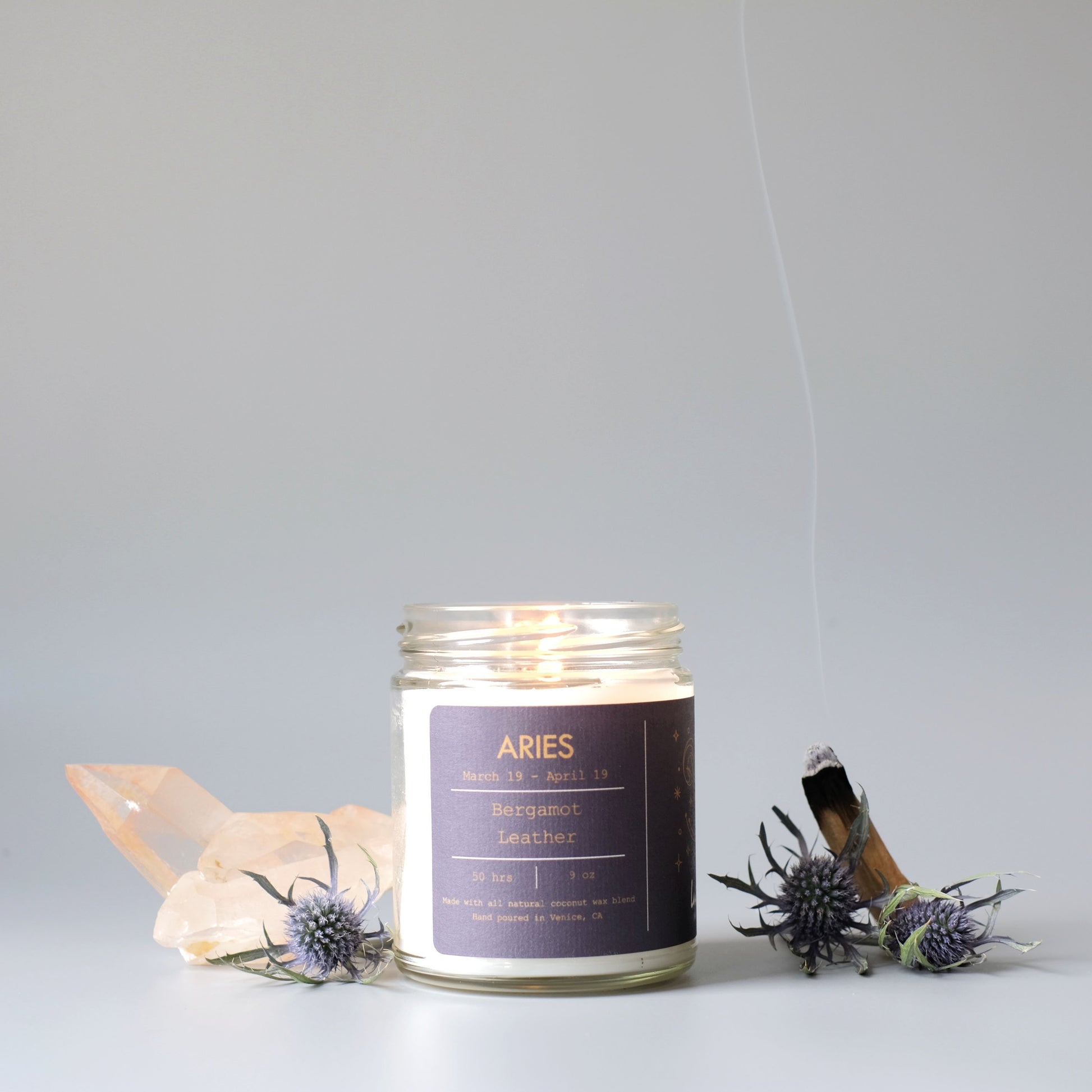 The Aries candle was designed to help you be bold, courageous in the face of your fears. We've combined the invigorating essence of Bergamot, inspiring prosperity and joy, with sexy Leather inviting a dash of earthiness.