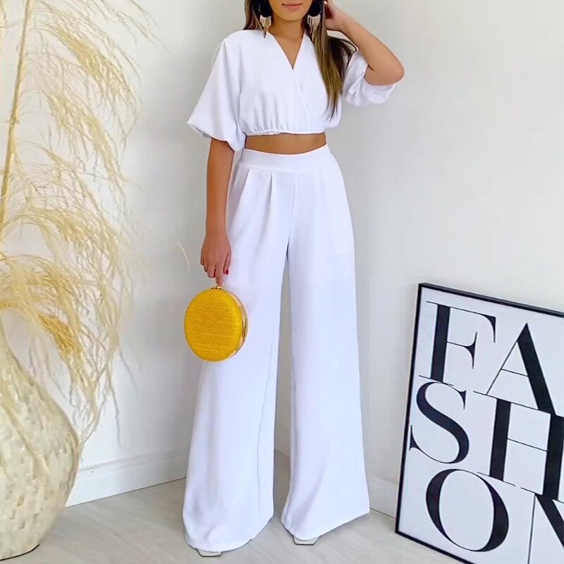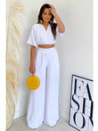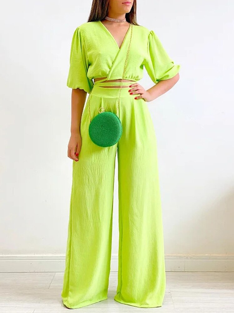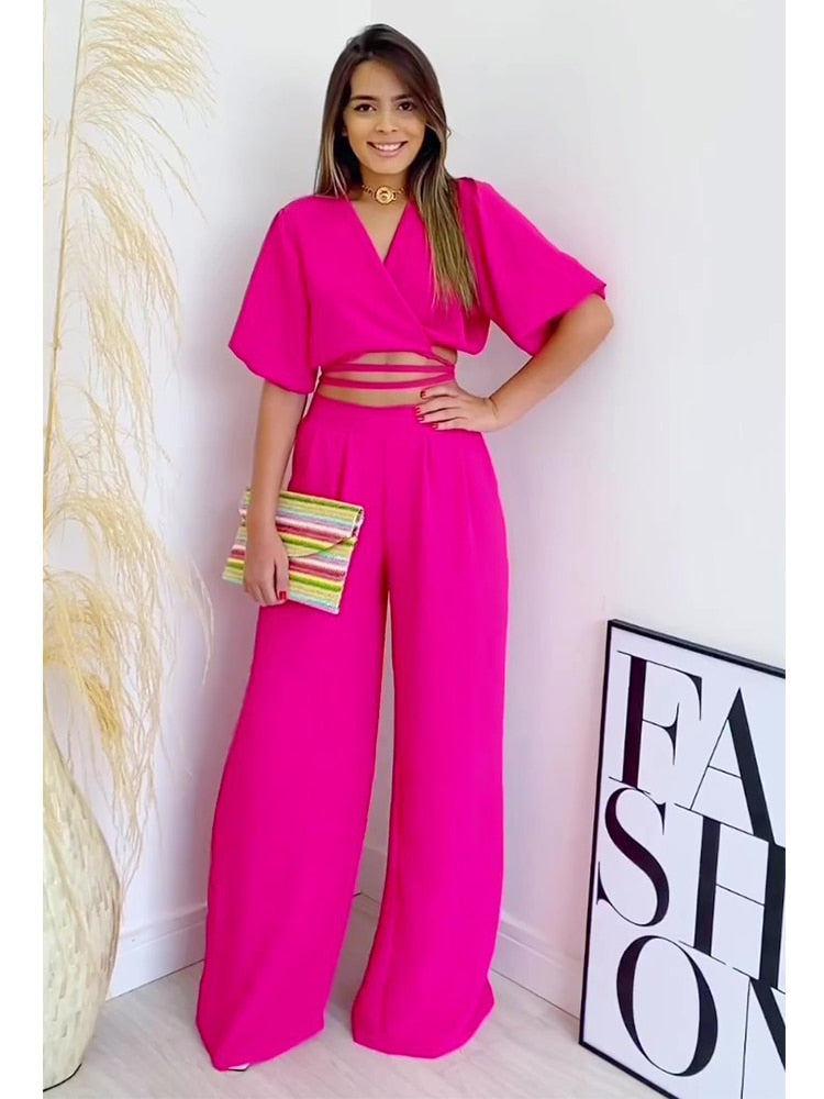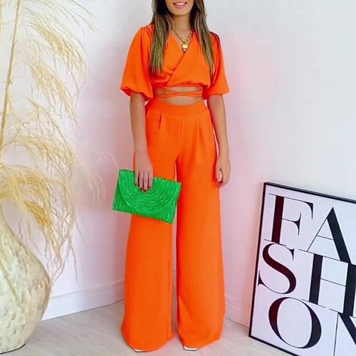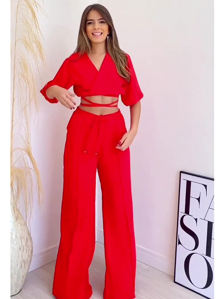 Double Tie Up Crop Top Wide Leg Long Pants