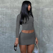 Printed Long Sleeve Top Sexy Skirts 2 Piece