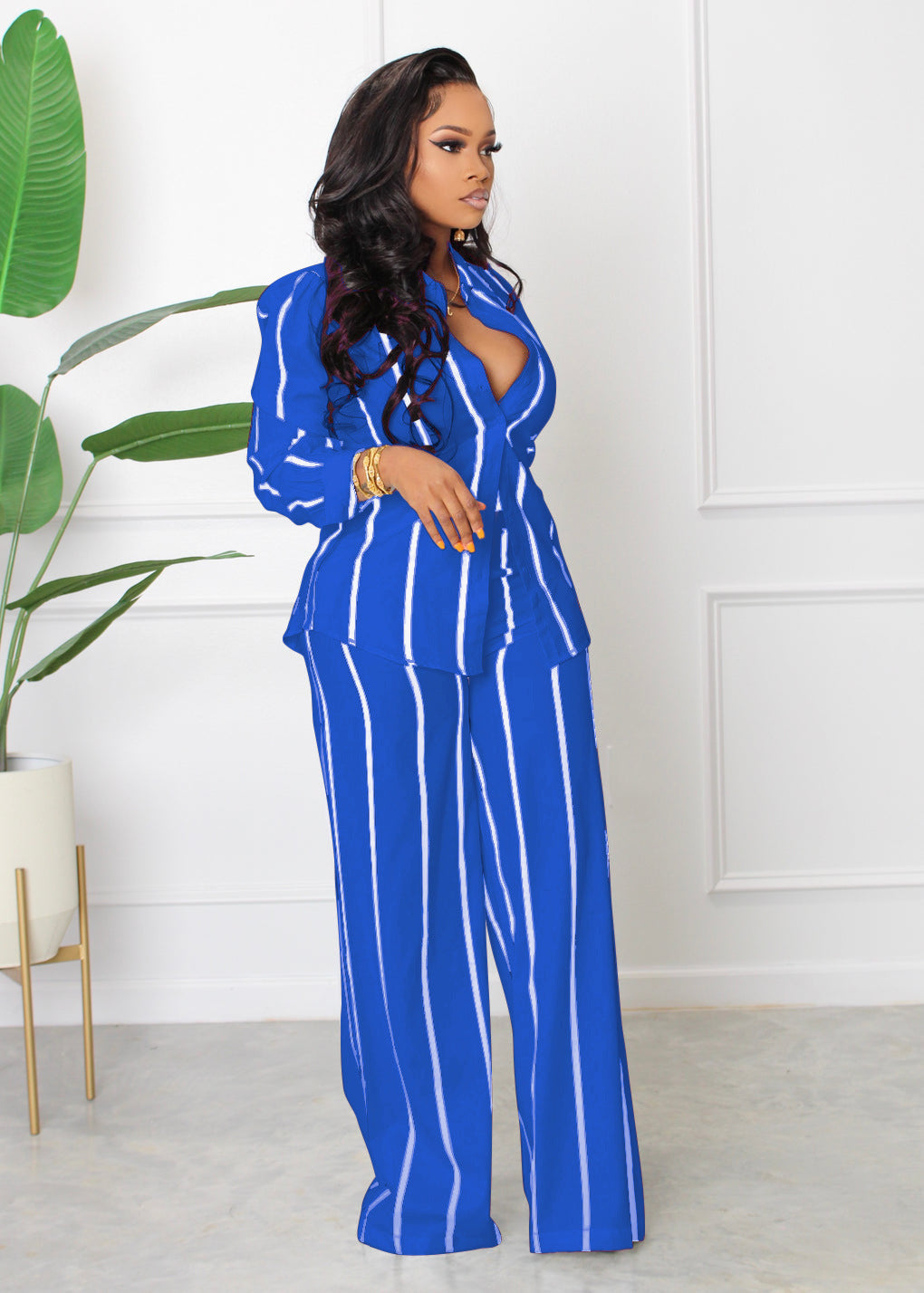 This stylish shirt set includes a printed and striped long-sleeved shirt with a loose and straight design. The set is perfect for those who want a versatile and comfortable outfit that can be dressed up or down. The breathable and soft fabric ensures a comfortable fit for all-day wear. Ideal for fashion-conscious women who want to look stylish and on-trend without sacrificing comfort. A great addition to any wardrobe.