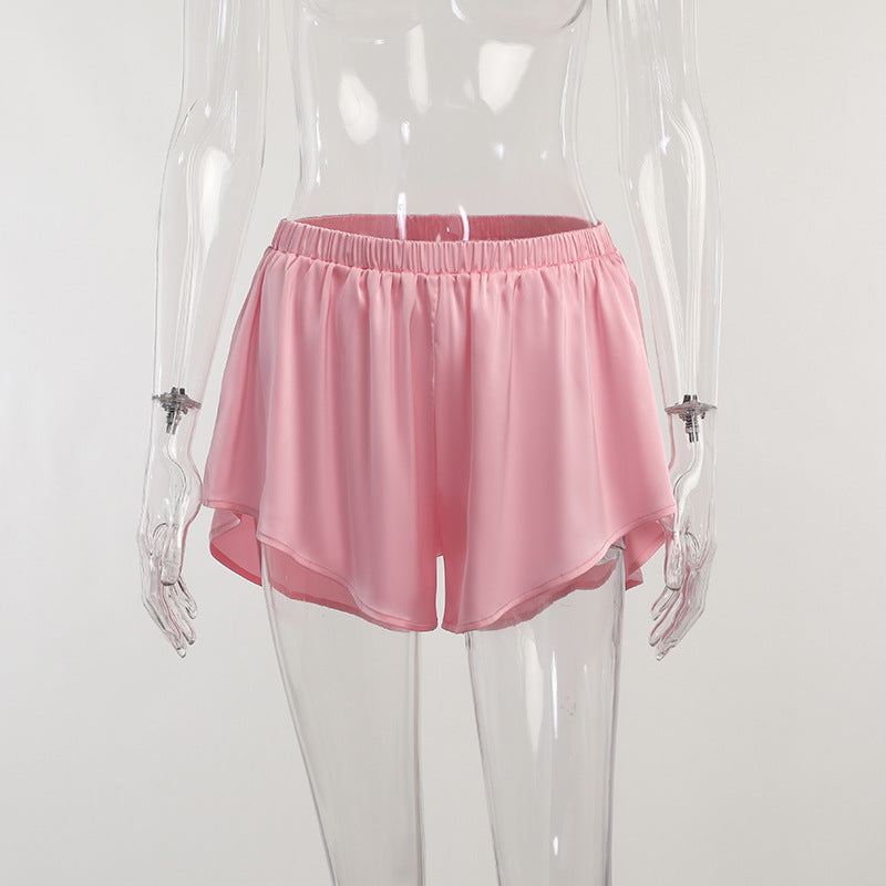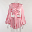 Satin 2 Piece Set Top and Shorts Skirts Outfits for Women