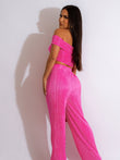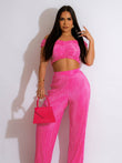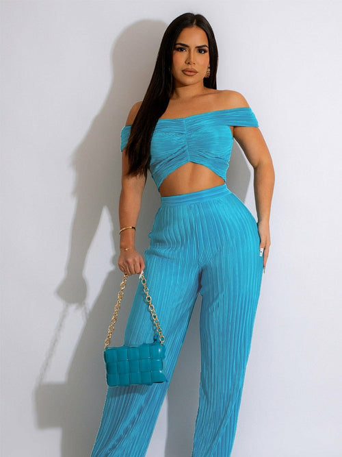 Sexy Off Shoulder Crop Top and Wide Leg Pants Set