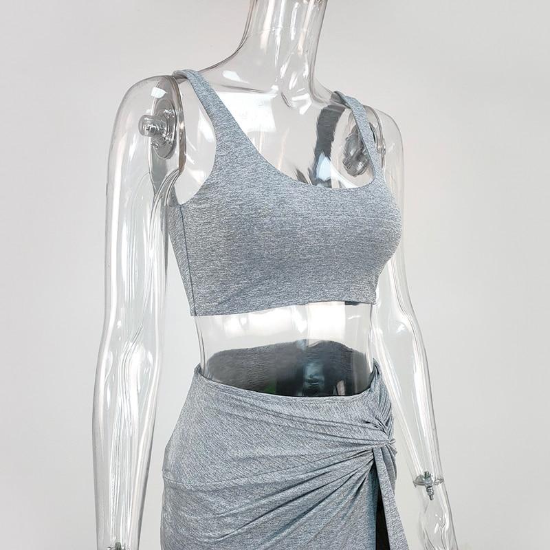 Sexy Party 2 Piece Set Women 2019 Plus Size Crop Top Twist Side Split