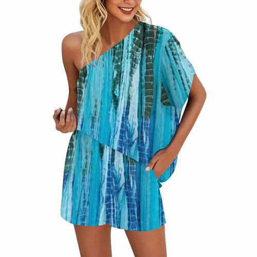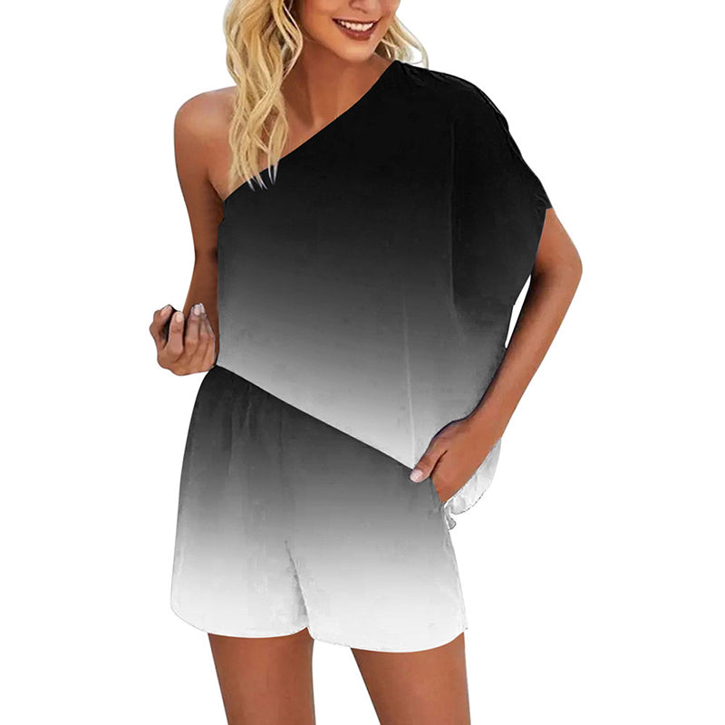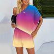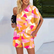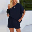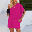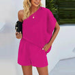 Skew Collar Off-shoulder Loose Casual Pullovers Shorts Two-piece Sets