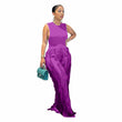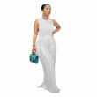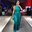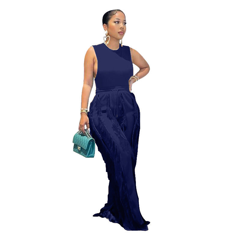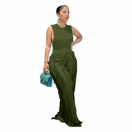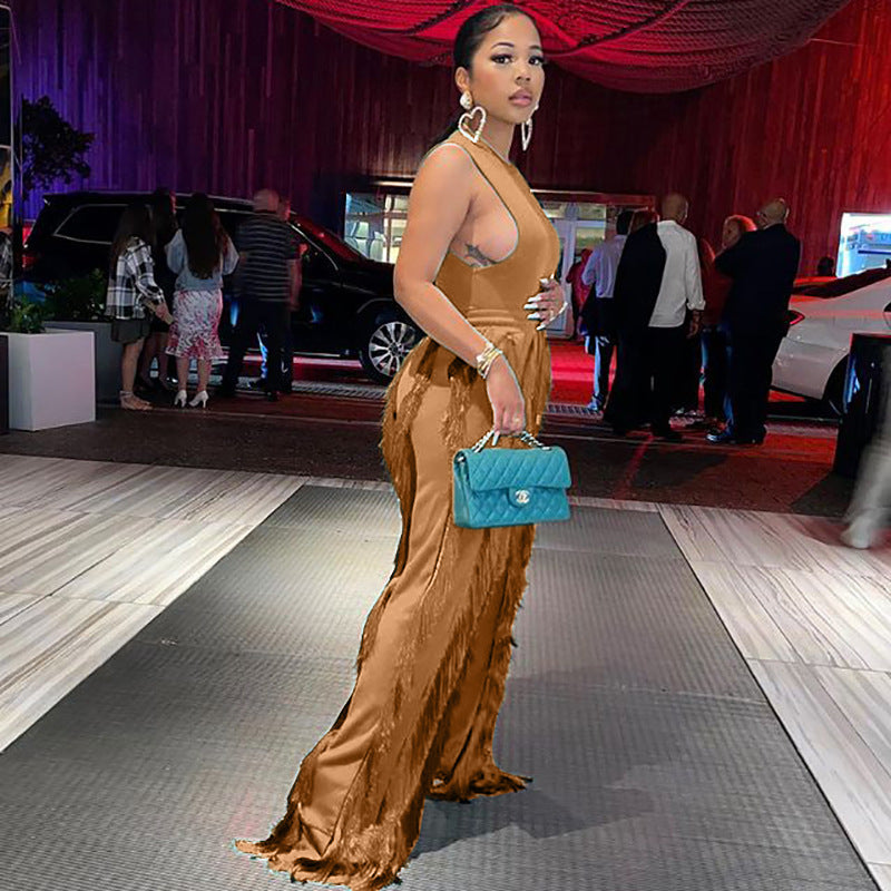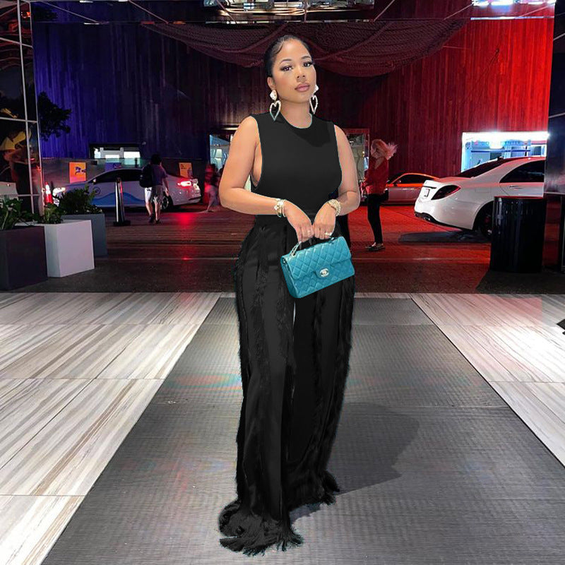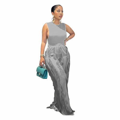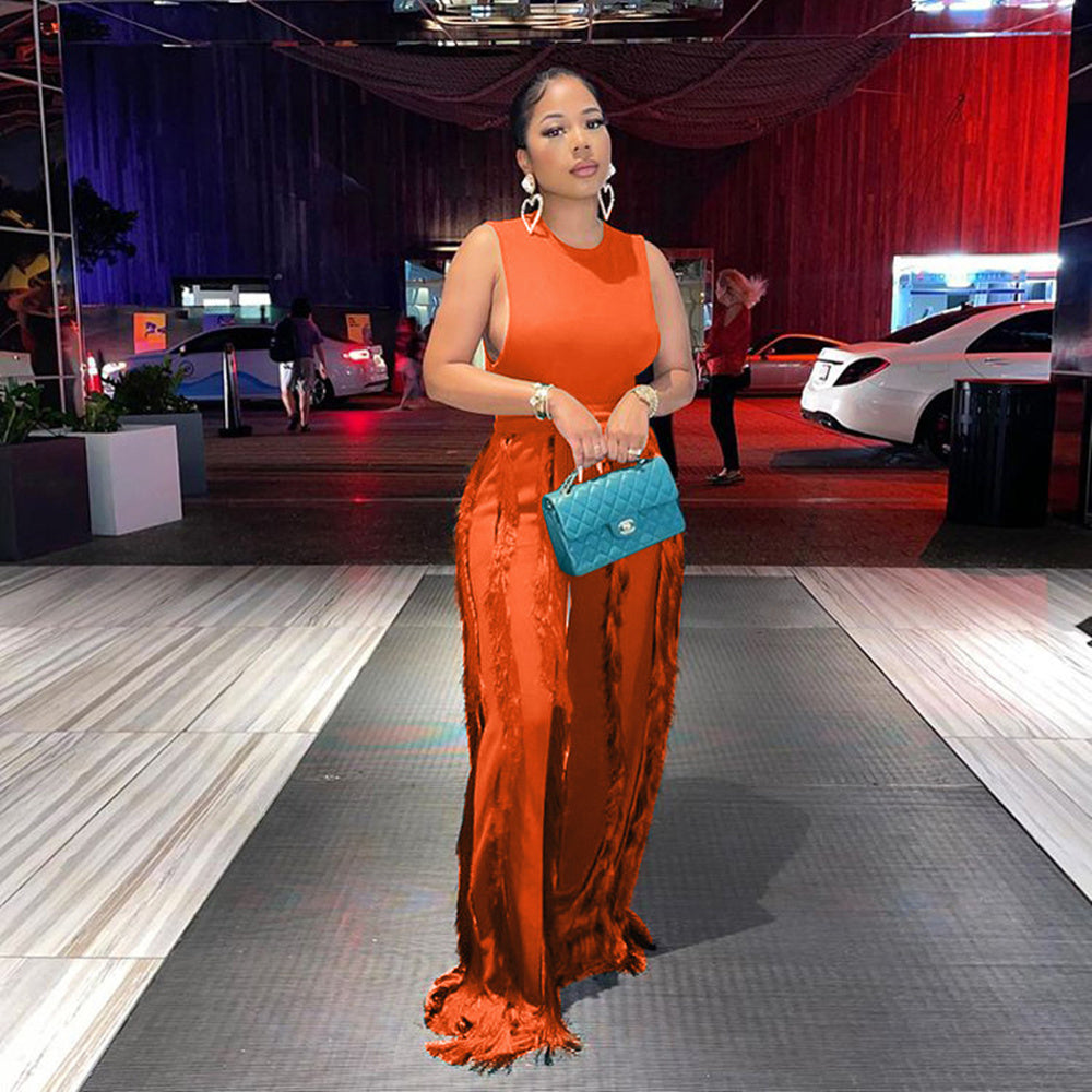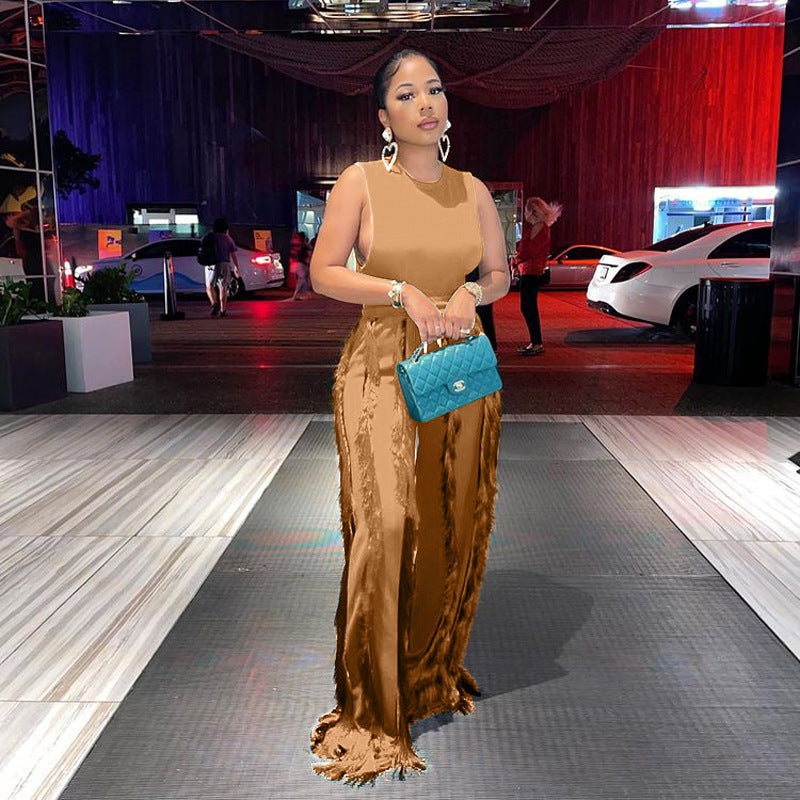 Sleeless Bosysuit and Tassel Pants Set Two Piece Fringe Wide Leg