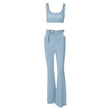 The Solid Color Sleeveless Vest Flare Pants Two-Piece Fashion Set combines a stylish sleeveless vest with a pair of flared pants, offering a trendy and coordinated look for any occasion.