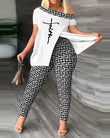 Summer Fashion Printed Two Piece Set Women Causa Off Shoulder Short
