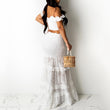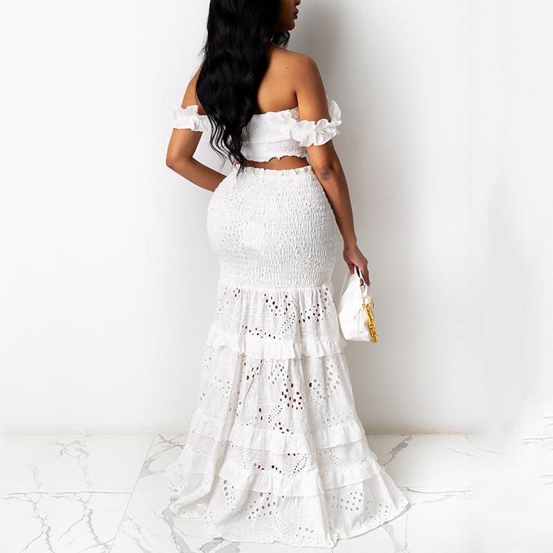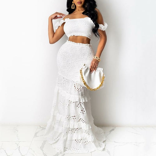 White Two Piece Set Women Sexy Off Shoulder Crop Tops And Long Mermaid