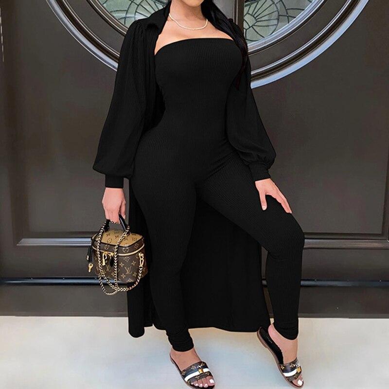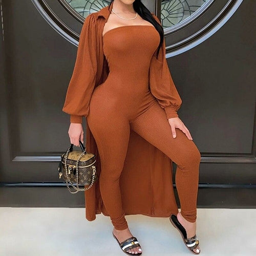 Women Fashion Jumpsuit and Long Cardigan Coat Set