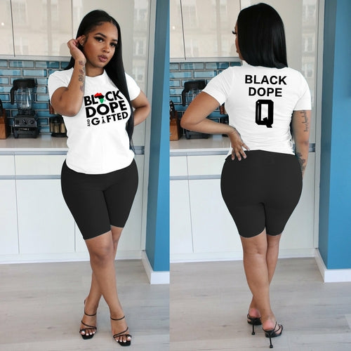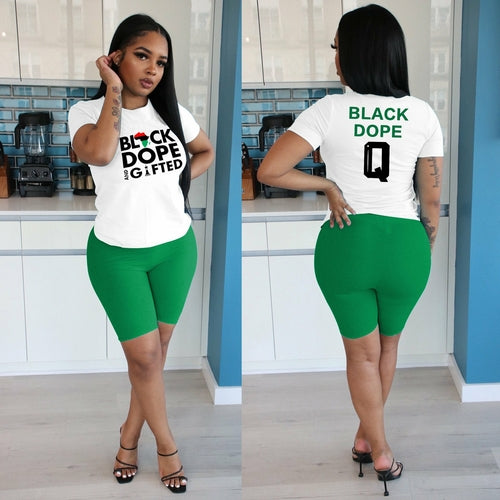 Women Letter Print Top & Ladder Cutout Shorts Two Piece Set