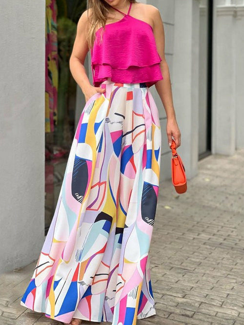 Pattern Print Tops And High Waist Loose Trousers Outfits