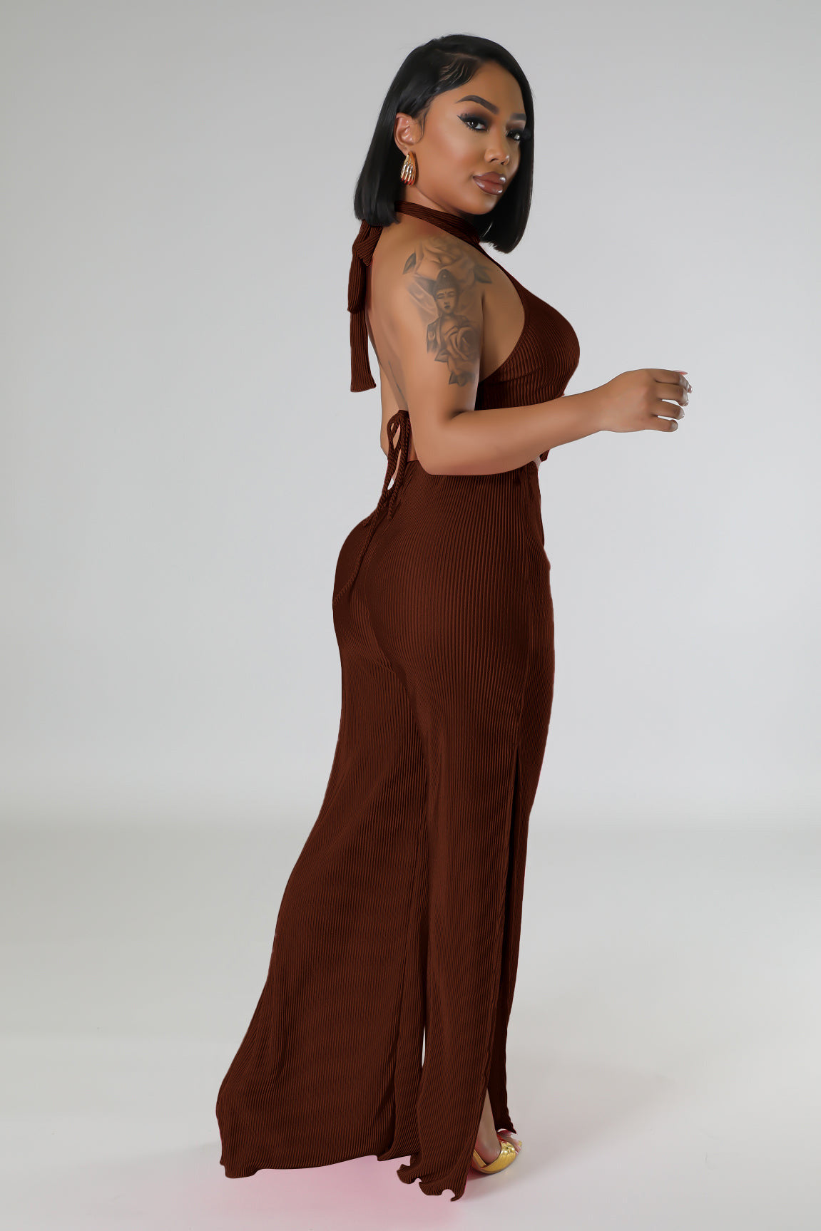 Sexy fashion backless split two-piece set